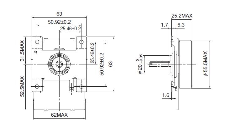 Φ 55 × L25 外转子式直流无刷电机 电机类型:3相直流无刷电机 旋转方向:CW and CCW 内置驱动控制电路 小型、轻盈、高输出 高效率 低噪音 过电流/堵转保护 也可提供切齿输出轴型